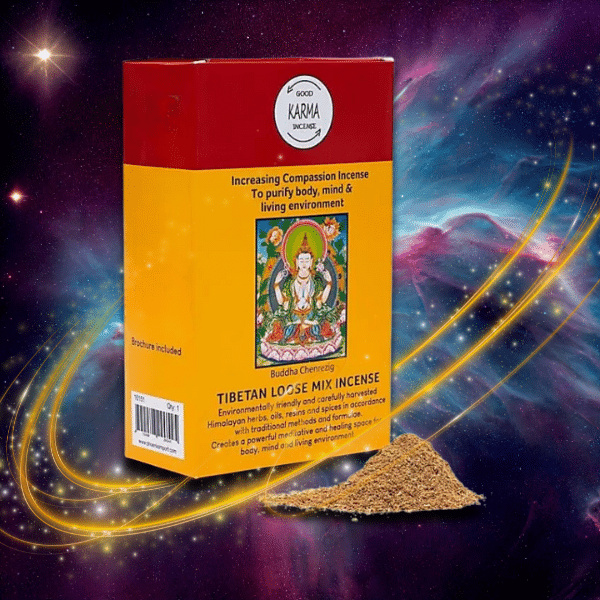 Reflétant la nature infiniment compatissante de Chenrezig (le Bouddha de la Compassion), cet encens est spécifiquement conçu pour favoriser l’ouverture du cœur et l’empathie.